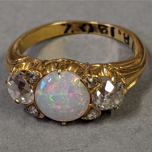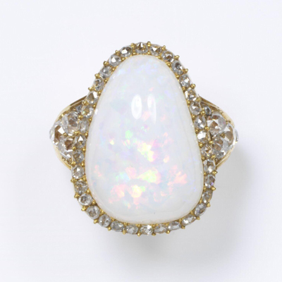 De naam ‘opaal’ komt uit het Sanskriet ‘upala’, dat ‘edelsteen’ betekende. In de Romeinse tijd was de opaal een bezit van keizers, en dat bleef zo door de eeuwen heen. Koningin Marie-Antoinette had aan het einde van de 18 eeuw een steen met zo’n fonkelende tekening dat hij de bijnaam ‘bosbrand’ kreeg. Opalen werden gezien als ‘lucky charms’, tot een roman van Sir Walter Scott [gepubliceerd in 1829] daar verandering in bracht. De hoofdpersoon in “Anne of Geierstein” heeft een prachtig opalen haarsieraad, maar sterft. En met haar verdween de populariteit van de opaal. Pas toen Queen Victoria de steen aan haar vele relaties cadeau begon te geven, zat de populariteit van de opaal weer in de lift – flink geholpen door de net ontdekte opaalvelden in Australië. Tot dat moment werden opalen voornamelijk in Slowakije gevonden, maar deze mijnen begonnen aan het begin van de 19e eeuw uitgeput te raken. Vanaf ongeveer 1880 worden er op vele plekken in Australië opaalvelden ontdekt – het begin aan een nieuwe opaalrage.