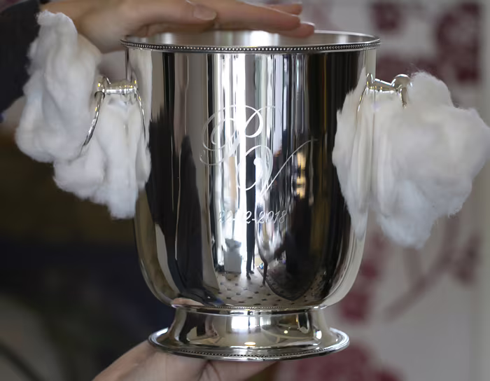 Het graveren van een verzilverde of zilveren wijnkoeler